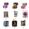 Fans have an image on one side. A wooden stick handle is included. Back handle available for an additional fee. Individual items are $8.00 each.