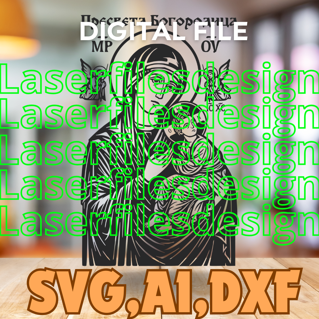 Presveta Bogorodica i Isus Hristos - Most Holy Theotokos and Jesus Christ - Digital File SVG,AI and DXF ,File for Laser Cutting and Engraving