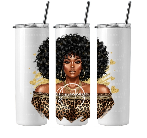 Glam Afro Woman PNG | Leopard Print Off Shoulder Design | Commercial Use Digital Download for POD & Sublimation