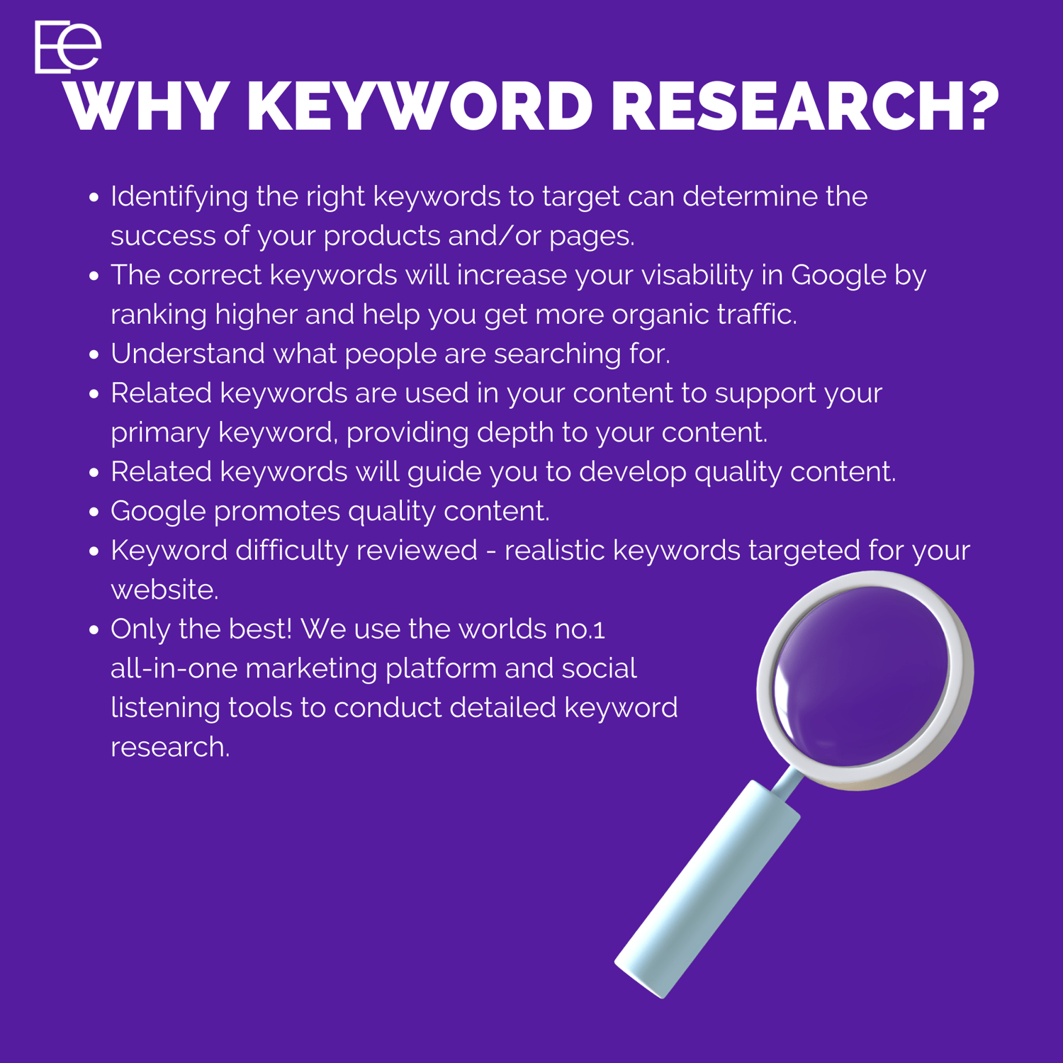 Keyword research can be a minefield, and without the right tools, it's impossible to know where to even start! What keywords do you need to target? How many people are searching for them each month? How difficult is it to rank for these keywords? Am I targeting keywords that I don't have a chance in ranking for? What are the related keywords? How do I use them in my content? That's where we come in!