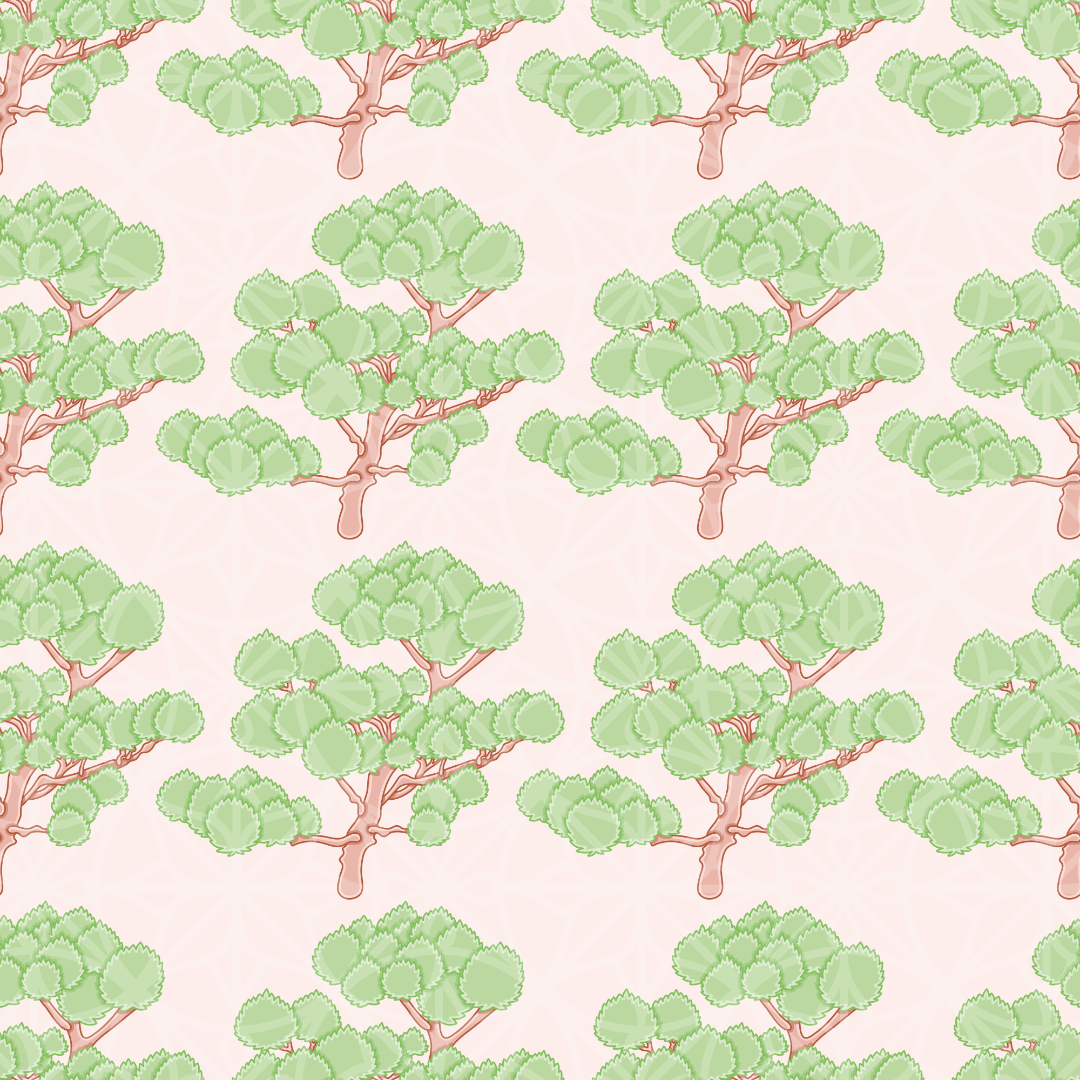Doodle tree vector repeat pattern. Cute shrub seamless illustration background.