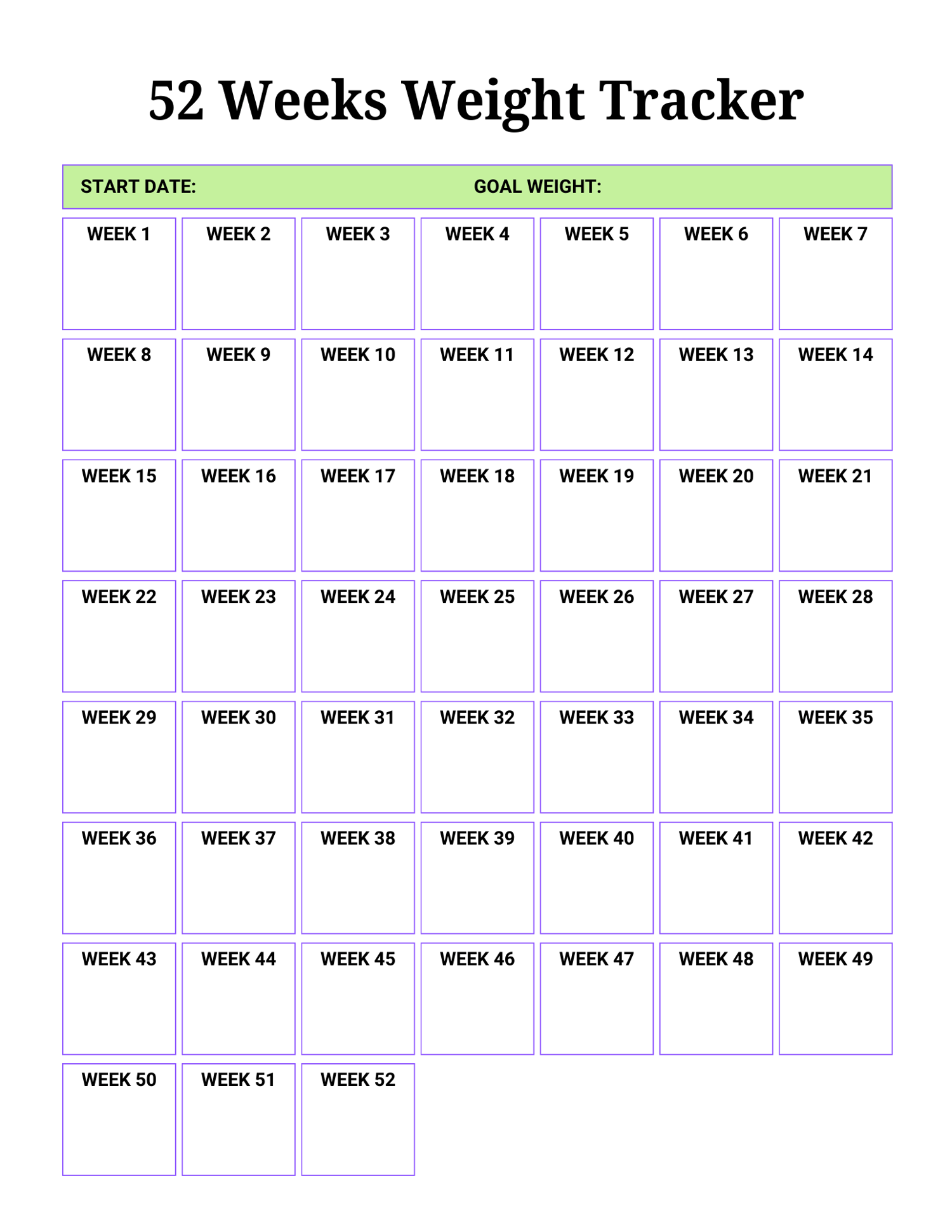 - 52 weeks weight tracker - 12 Weeks weight tracker - 30 Day challenge - 100 Mile challenge