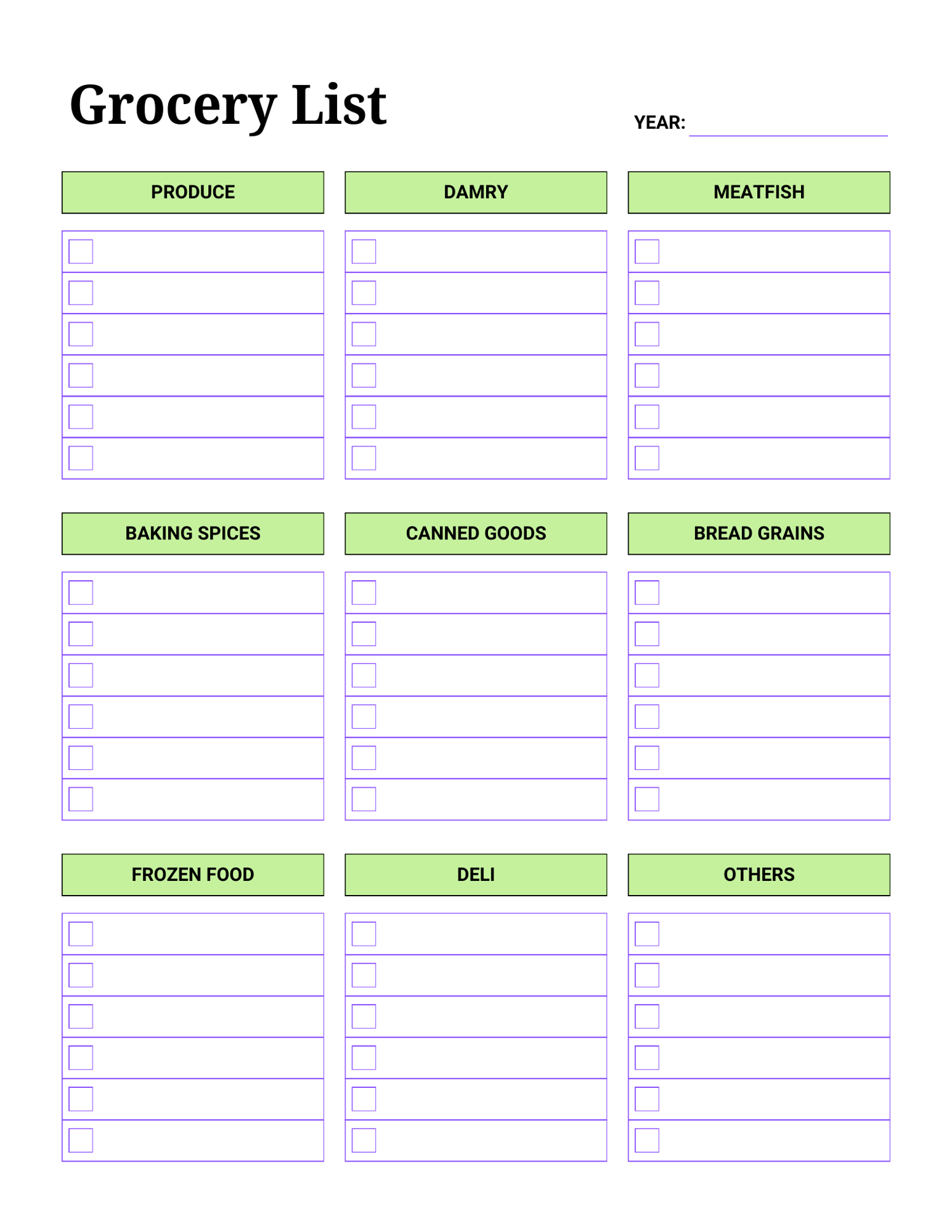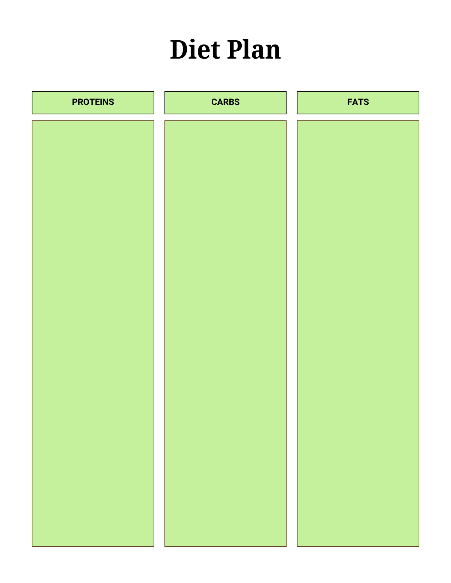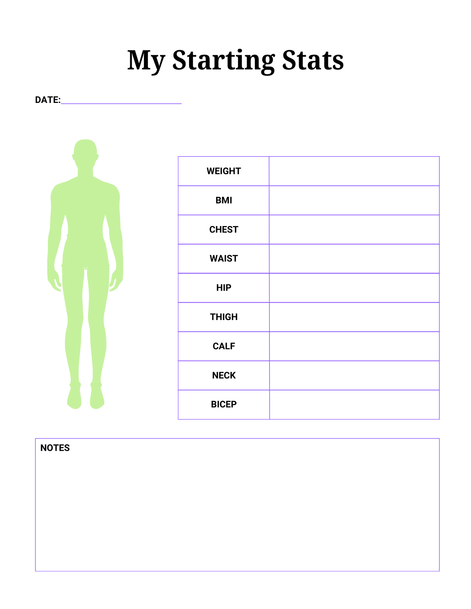 - Grocery List x 2 - Diet Plan - My Starting Stats - Body Measurement - Measurement Tracker