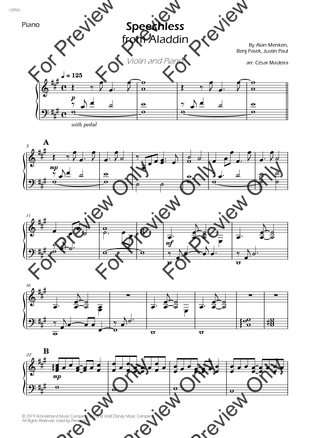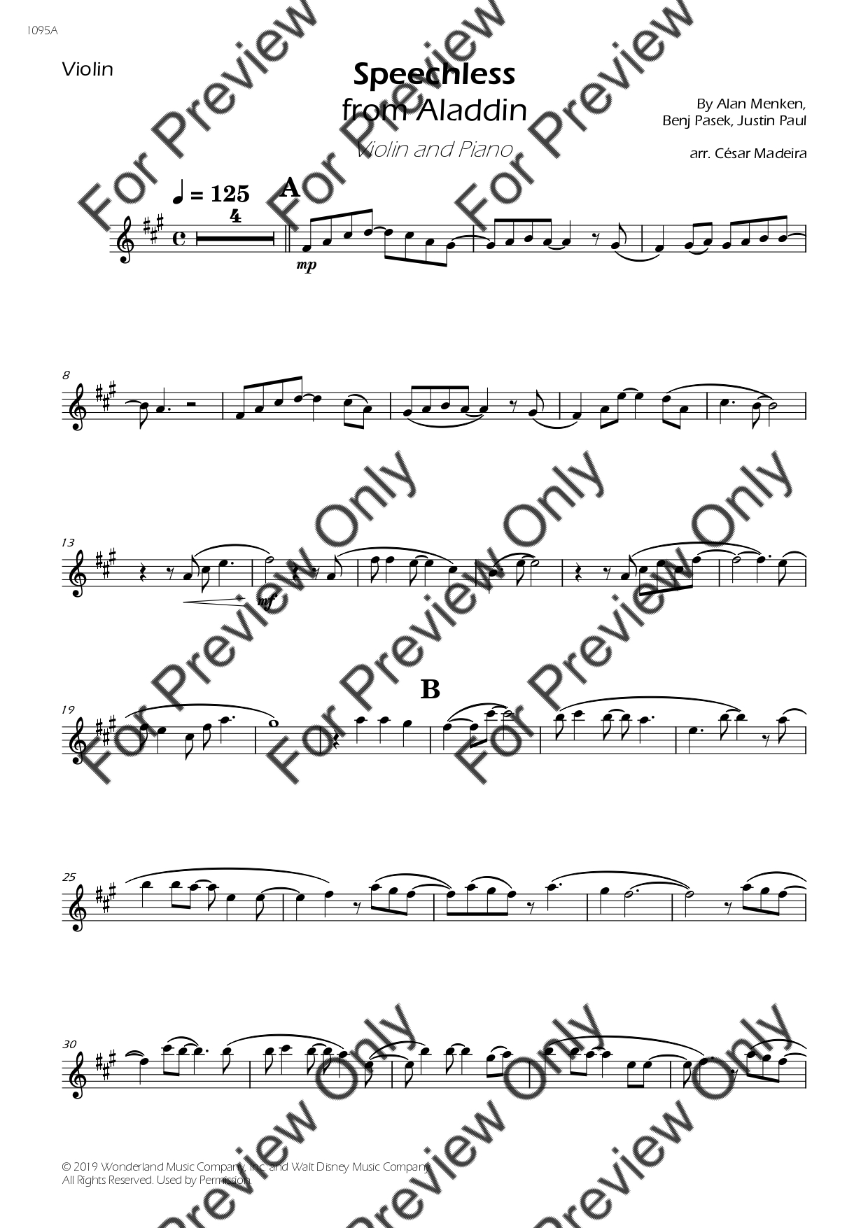 Speechless from Aladdin by Alan Menken. Arrangement for Violin and Piano. With Full Score and Individual Parts. Have fun!
