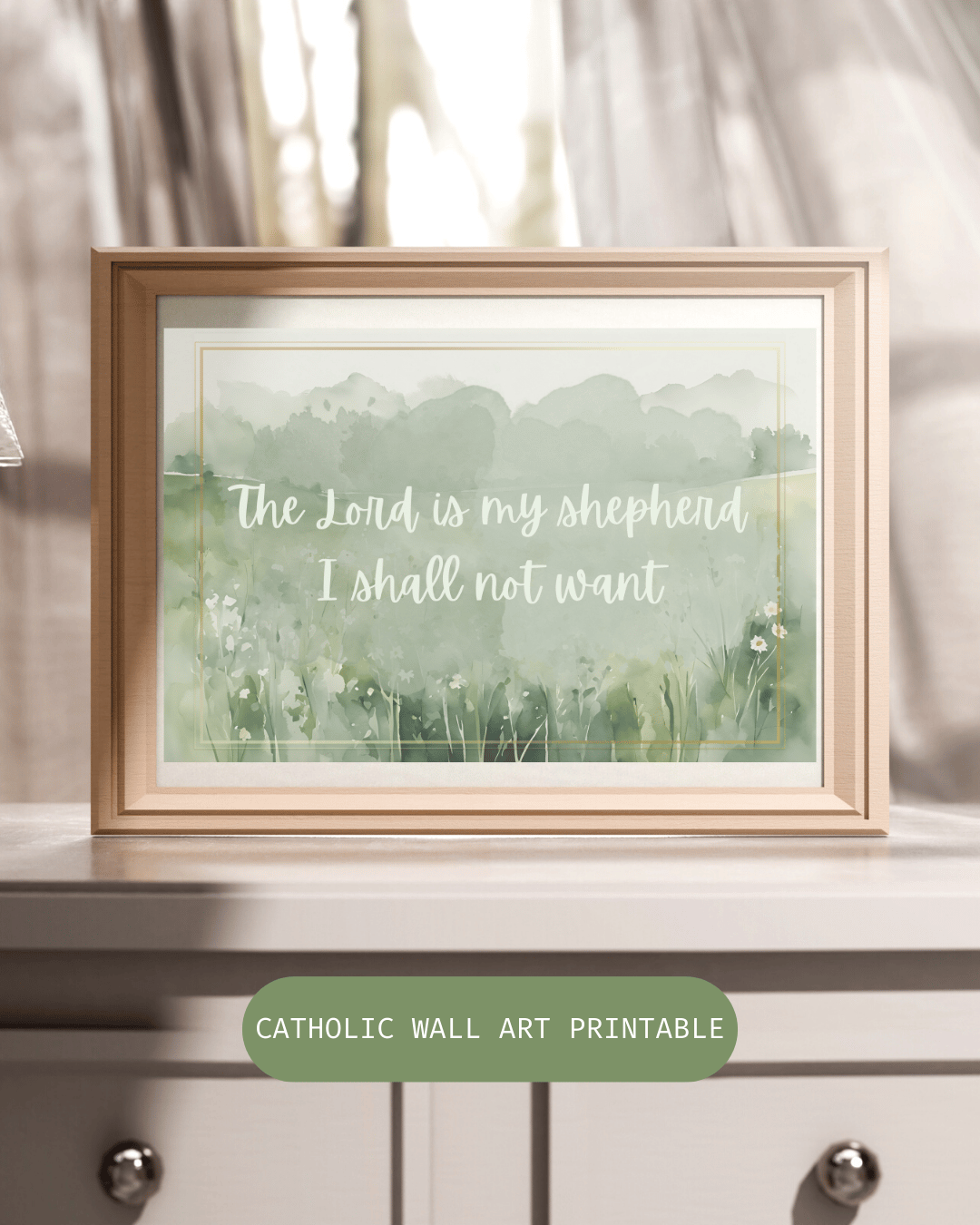 Psalm 23:1 Catholic Wall Art | “The Lord Is My Shepherd” Printable | Watercolor Nature Christian Decor