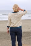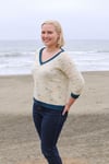 The Seaside V-Neck is inspired by many things: One, the beautiful hand-dyed colorway “Seaside” made by Nina of Speckled Finch Studios; Two, the area where the crashing sea meets the rocky Northern California coastline, which so happens to be where both designer and dyer live as neighbors.