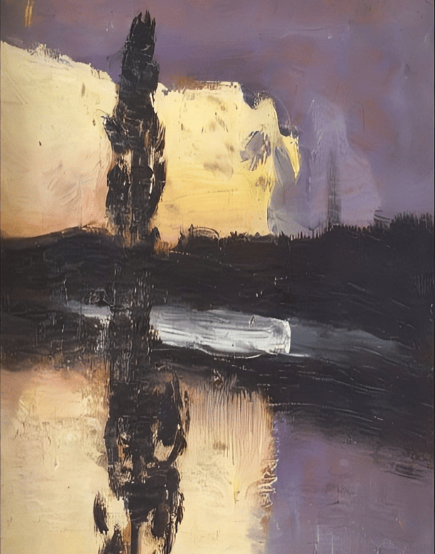 Sunset Dusk Wall Art, Vintage Landscape, Nostalgic Nature, Cool Nature, Rustic natural Landscape, Painting.