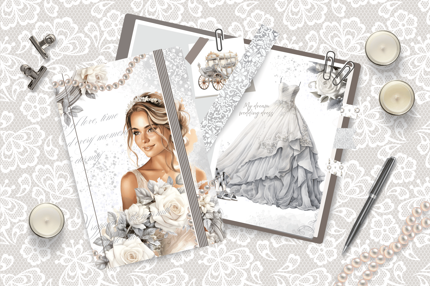 Download this Vintage Romantic Grey & White Vintage Wedding Digital Paper Set. These beautiful JPG papers are perfect for your Wedding-themed DIY project. From custom DIY wall art to card design, photo book decoration, and much more! You can also use them as backgrounds for your other DIY projects! Here are some more ideas on using them.