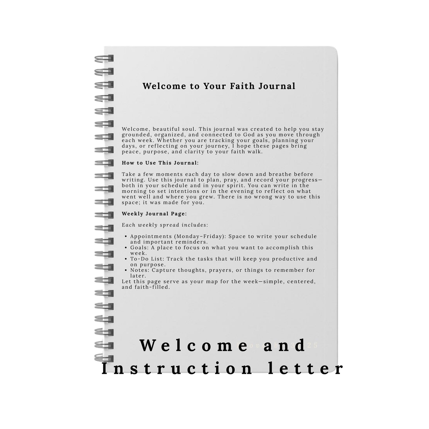 This one-month faith-based journal helps you stay centered and connected to God. Each divider opens to a weekly planner, 7 daily pages for focus and prayer, and bonus note and sketch pages to record thoughts, lessons, and inspiration.
