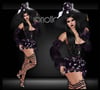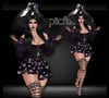 Top,Sleeves, Mini Skirt,Boots,Hat,Broom and Cauldron Bag.