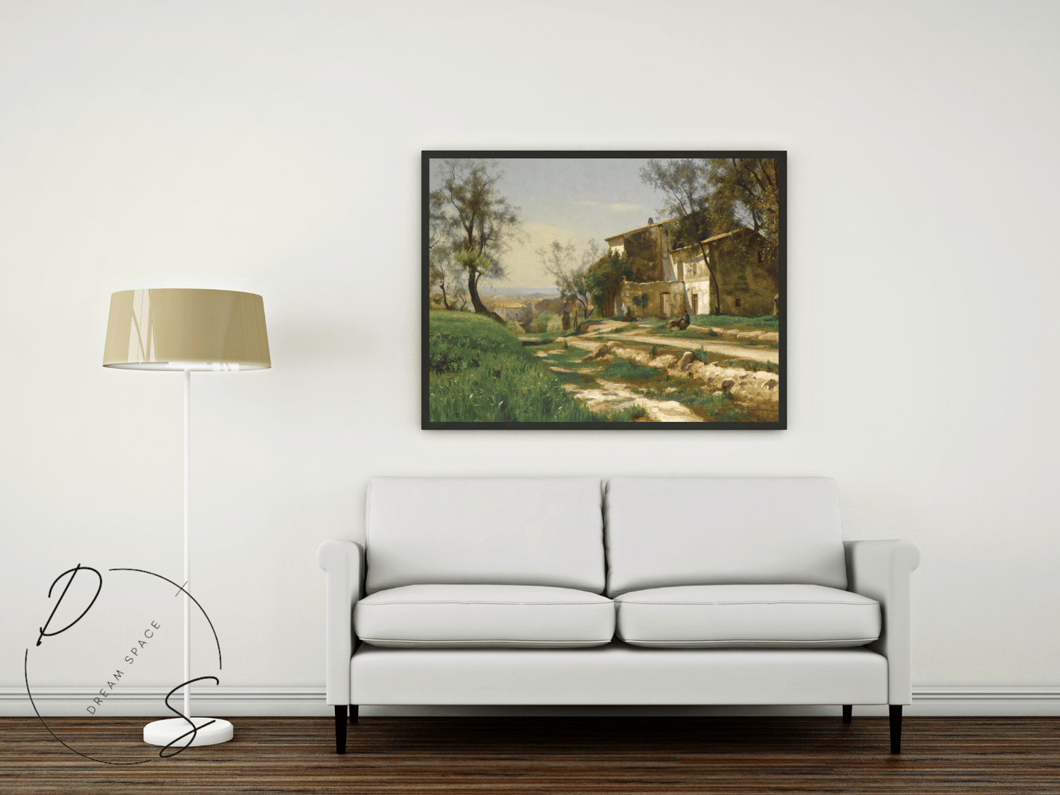 This is DIGITAL PRINTABLE PRODUCT | Instantly download and print this Village Painting. Original artwork from 19th Century.