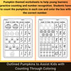 - Festive pumpkin theme makes learning fun