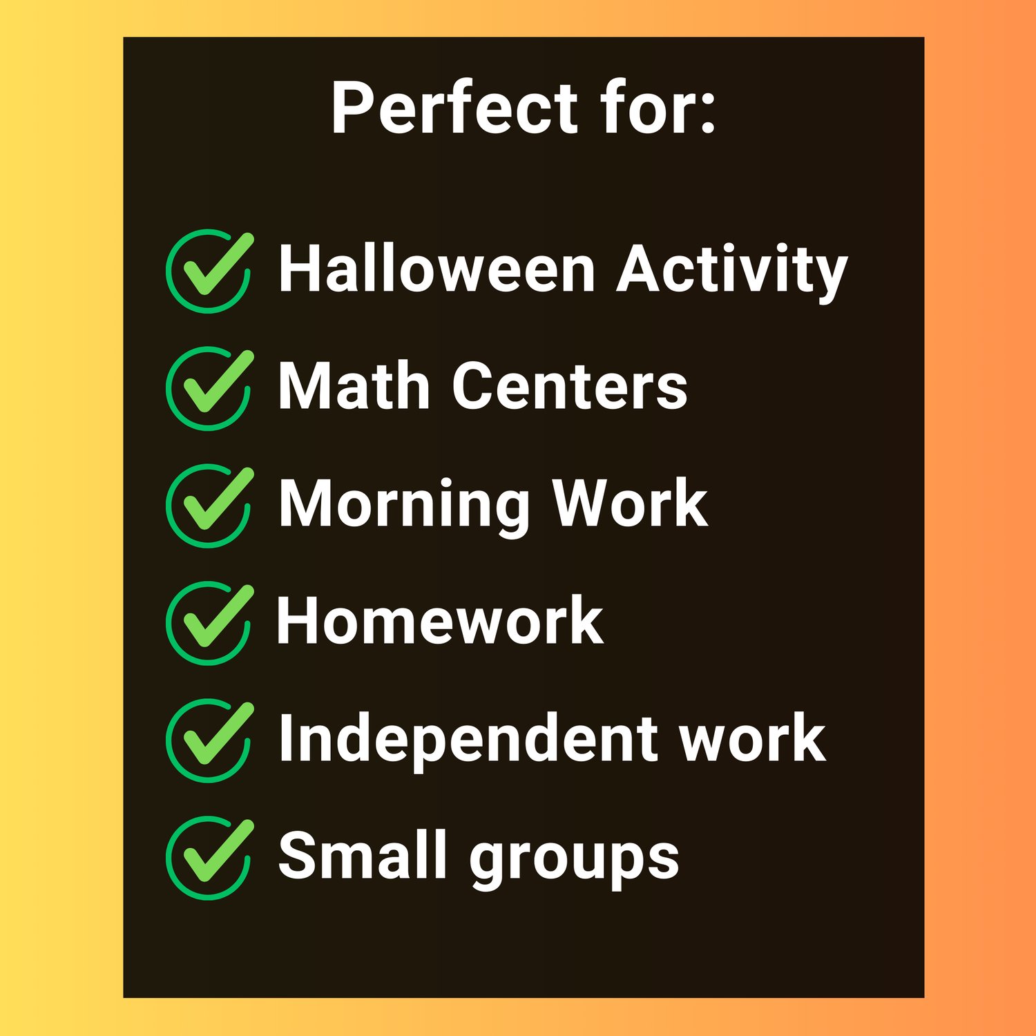 - Halloween classroom parties & seasonal fun.