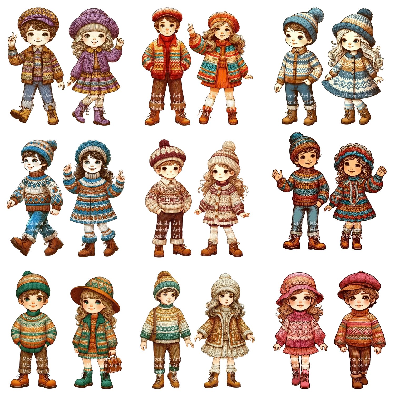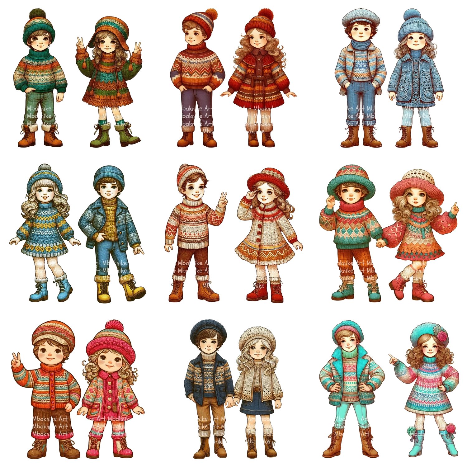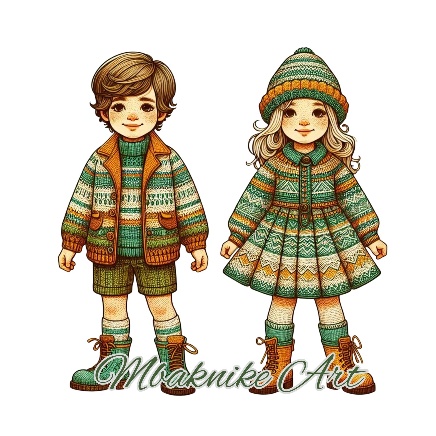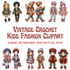 This digital product includes 40 images of Vintage Crochet Kids Fashion Clipart in PNG Transparent format, 300 dpi, 3840 x 3840 px size.
