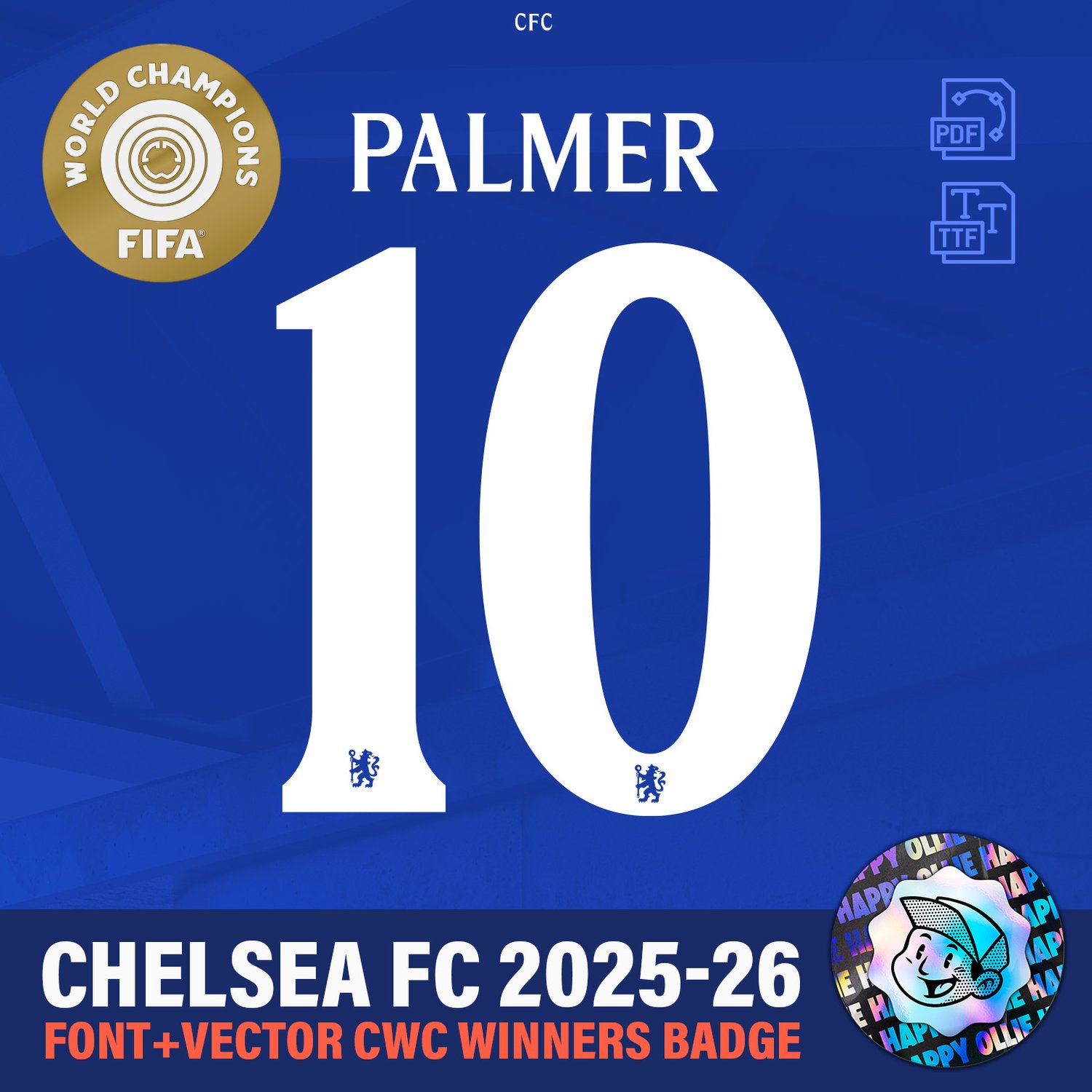 Chelsea FC font jersey 25-26 vector 2025 + World Cup Champions Badge pdf, svg, ttf Chelsea Football Club, European Matches Font