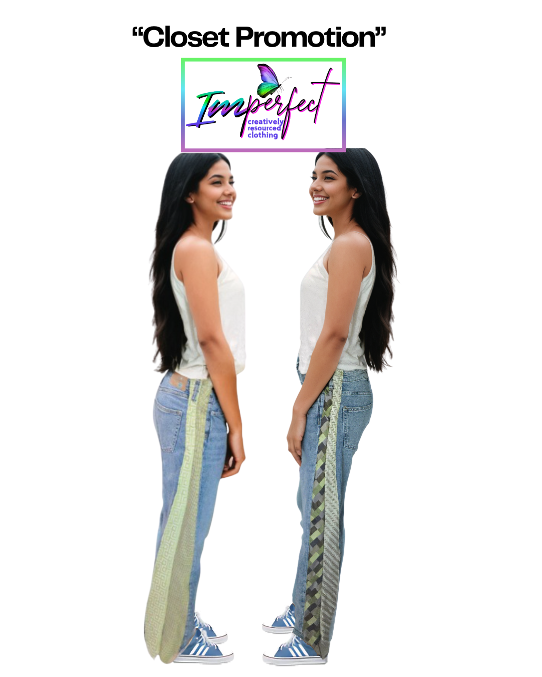 Vintage neckties got fired and found a better gig—stitched down the legs of upcycled denim. Wear these and strut in like you own the boardroom... or at least like you damn well should.