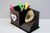 It is then glued on a black box with a leather like surface that serves as a Pen Holder.