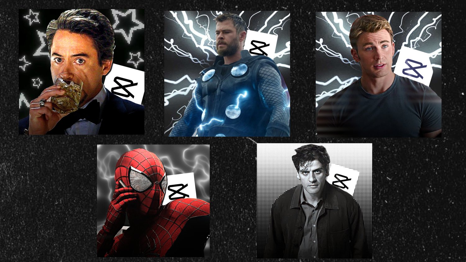 5 Marvel profile characters with "Capcut" logo