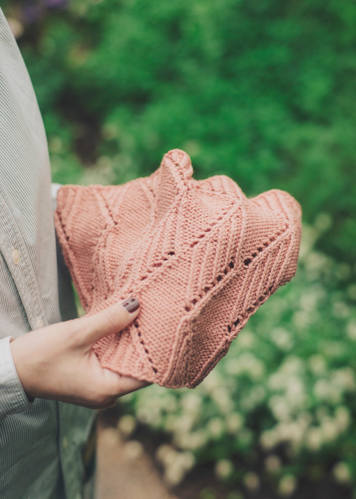 Equinox is a lightweight cowl with an allover lace motif for transitional seasons.