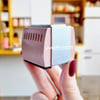 This miniature toaster has real slots to insert your miniature bread slices, and a working control knob and toast lever.