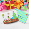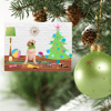 This is an adorable Christmas Holiday card that features a fancy Yellow Labrador Retriever enjoying his presents!