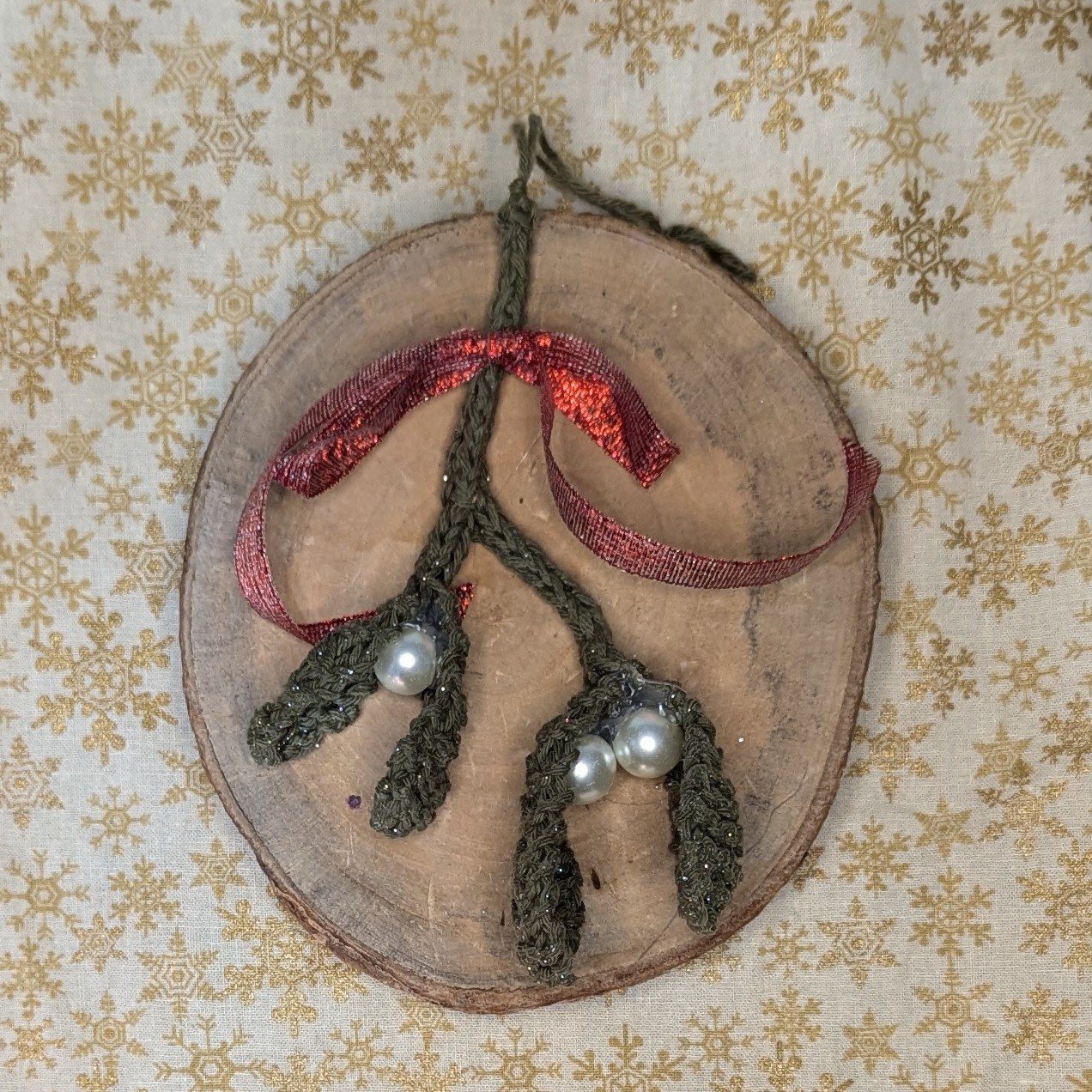 A note on yarn selection: because this is an ornament, there is not a gauge swatch. Garter stitch fabric should be fairly dense to help give the leaves shape. A fingering weight yarn would need very small needles and would make a tiny mistletoe, while a larger aran or chunky weight on larger needles would make a giant mistletoe.