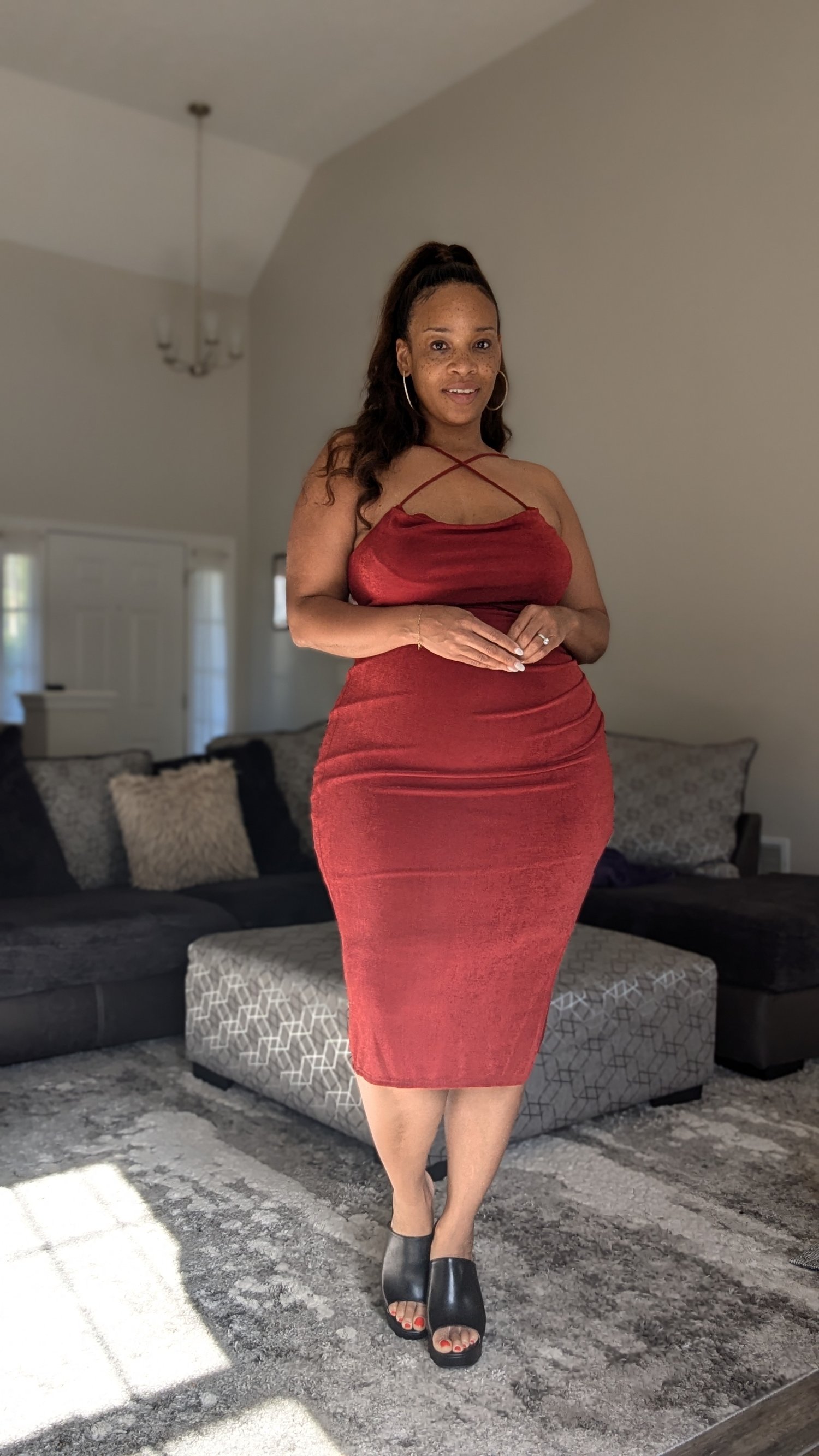 Red Strappy Midi Dress