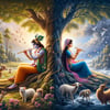 In the quiet sanctity of Nidhi Vana, love ceases to be an emotion—it becomes a sacred dance. The moonlight glows softer here, the breeze hums celestial melodies, and every flower blooms with devotion. It is in this mystical grove that the Rasa Leela—the divine play of love—unfolds, leaving an indelible mark on the hearts of those who dare to witness it. This is where the human and the divine unite, where Radha's pure love for Krishna mirrors the soul's eternal quest for the divine.