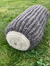 The length of this pillow is easily adjustable to meet your needs. The size shown fits conveniently nestled into a standard camping chair. It is possible to get a larger or smaller diameter finished pillow by adjusting needle size and yarn.
