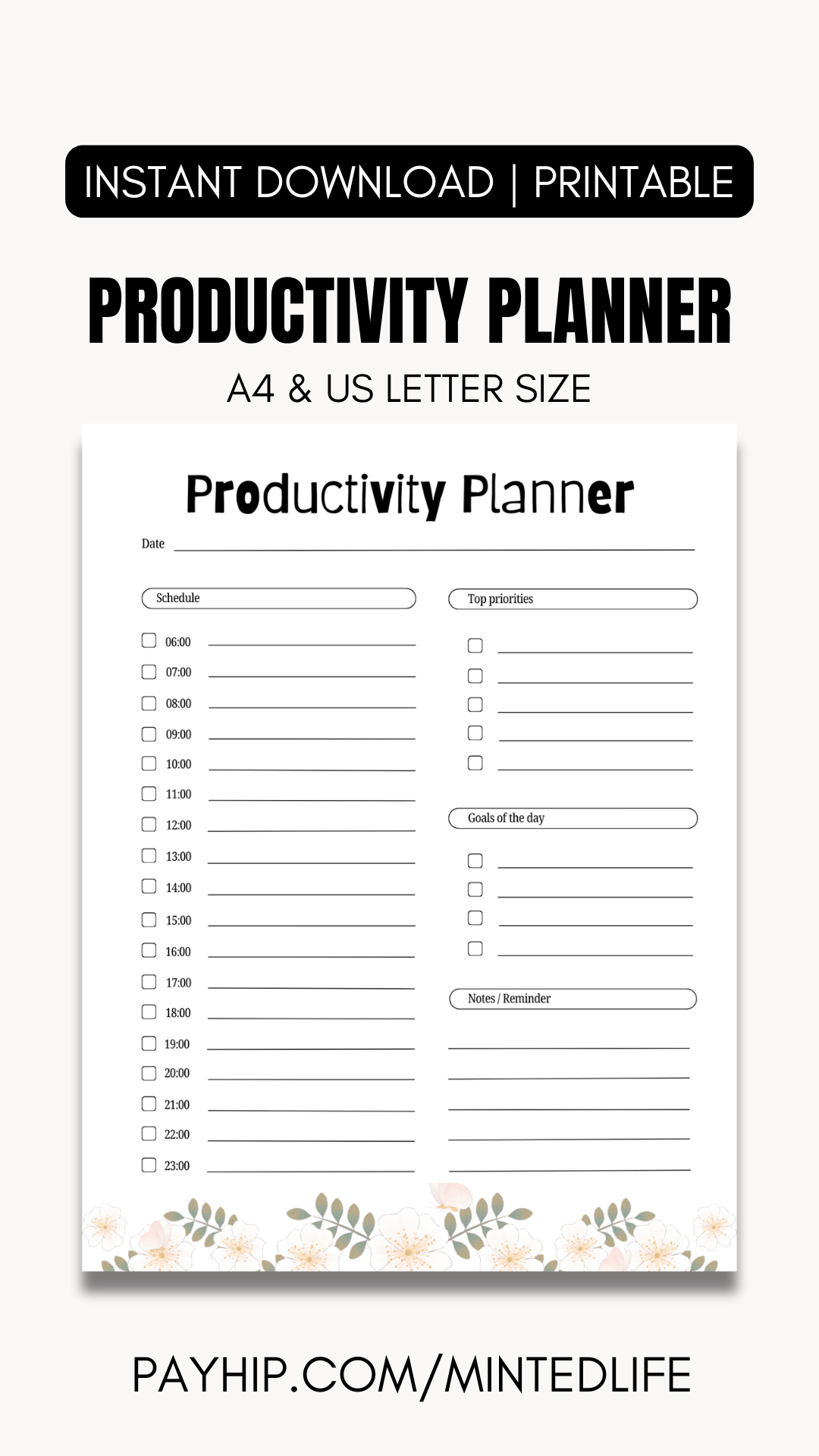 Minimalist Productive Daily Planner | A4 and US Letter size