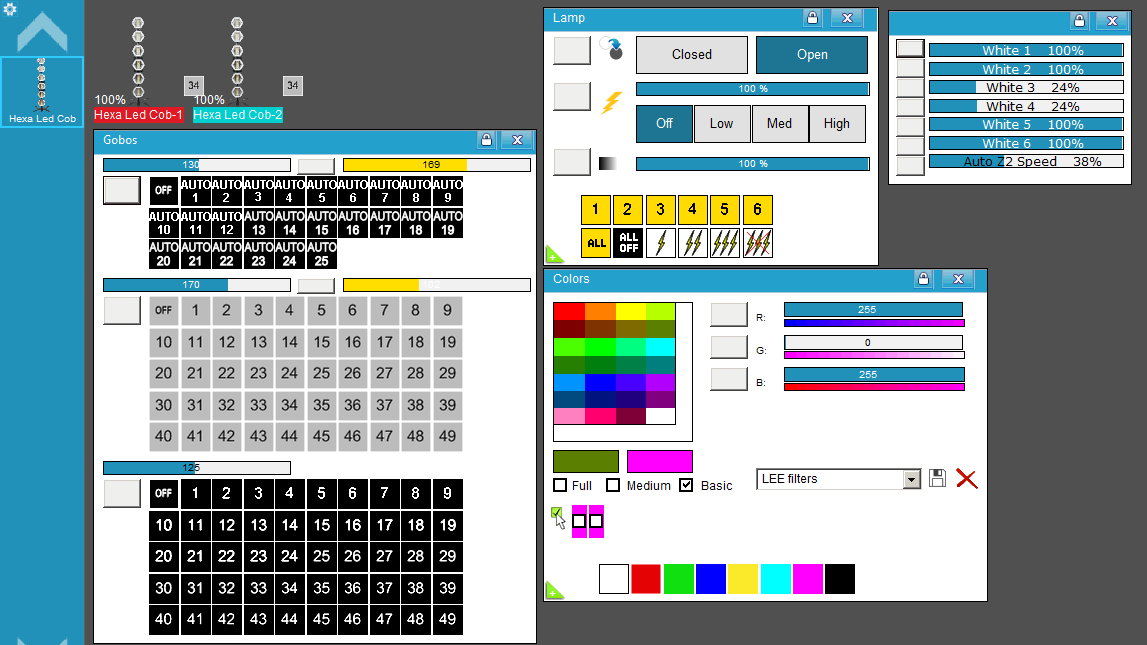 Librería para Freestyler DMX del blinder "Hexa Led Cob 6 Linear Retro Lights" de Hlight ( 20-56CH ).