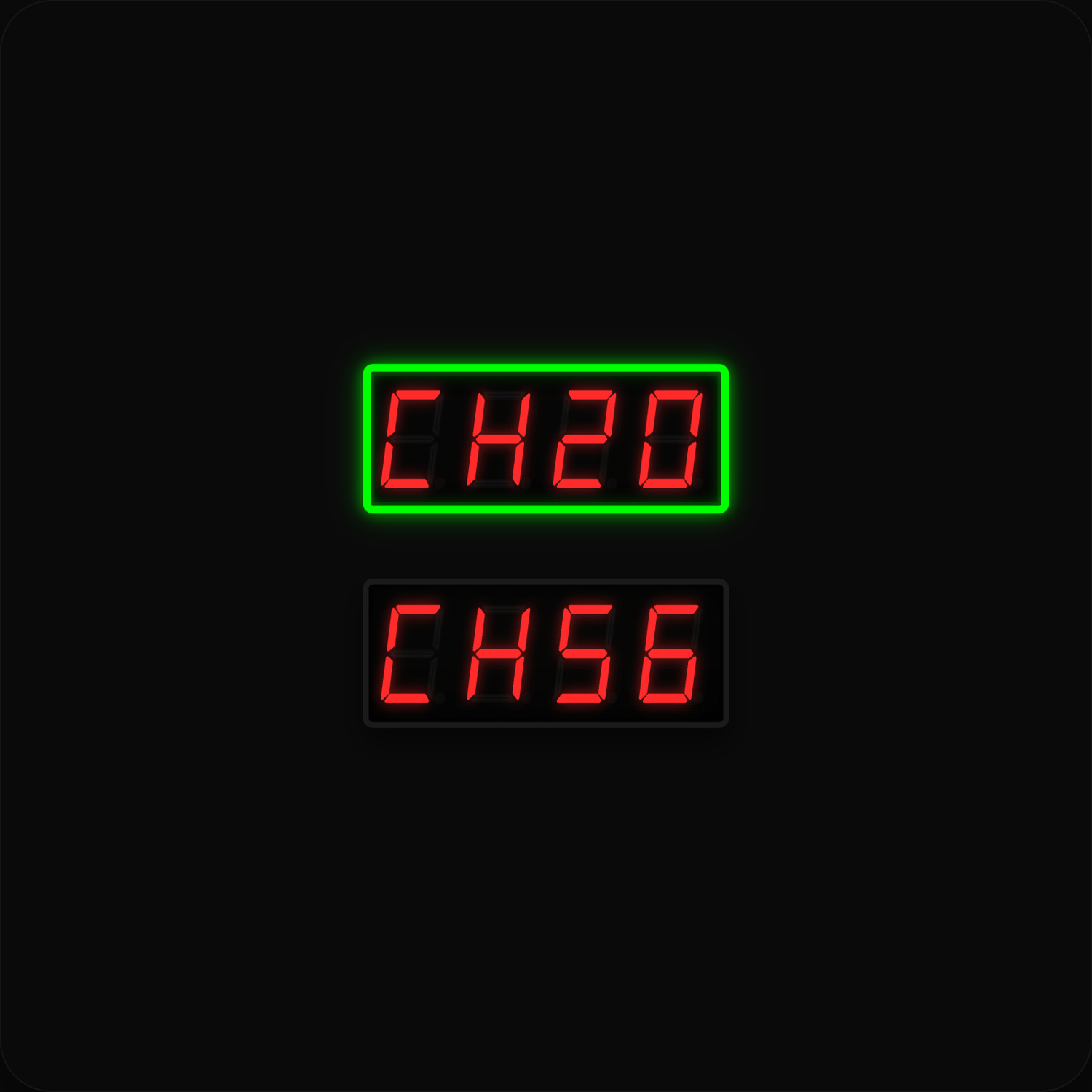 * Verifique, desde el display del equipo, que el menú "CH" muestre los modos: CH20 y CH56 (tercer foto).