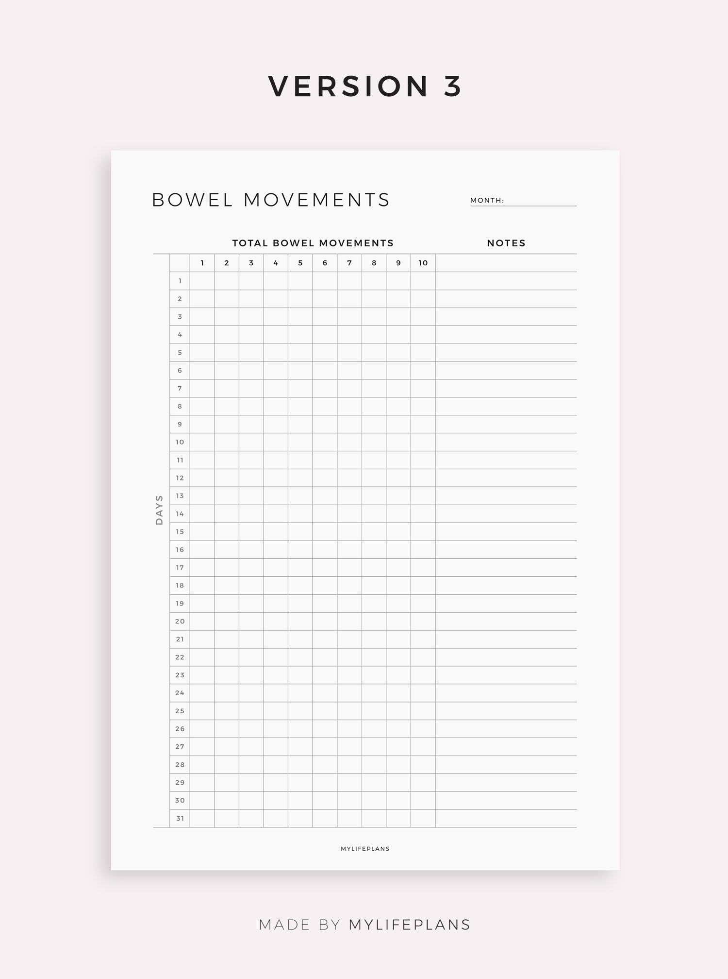 Bowel Movement Tracker Template for Remarkable, Supernote, Kindle Scribe, Boox, Kobo