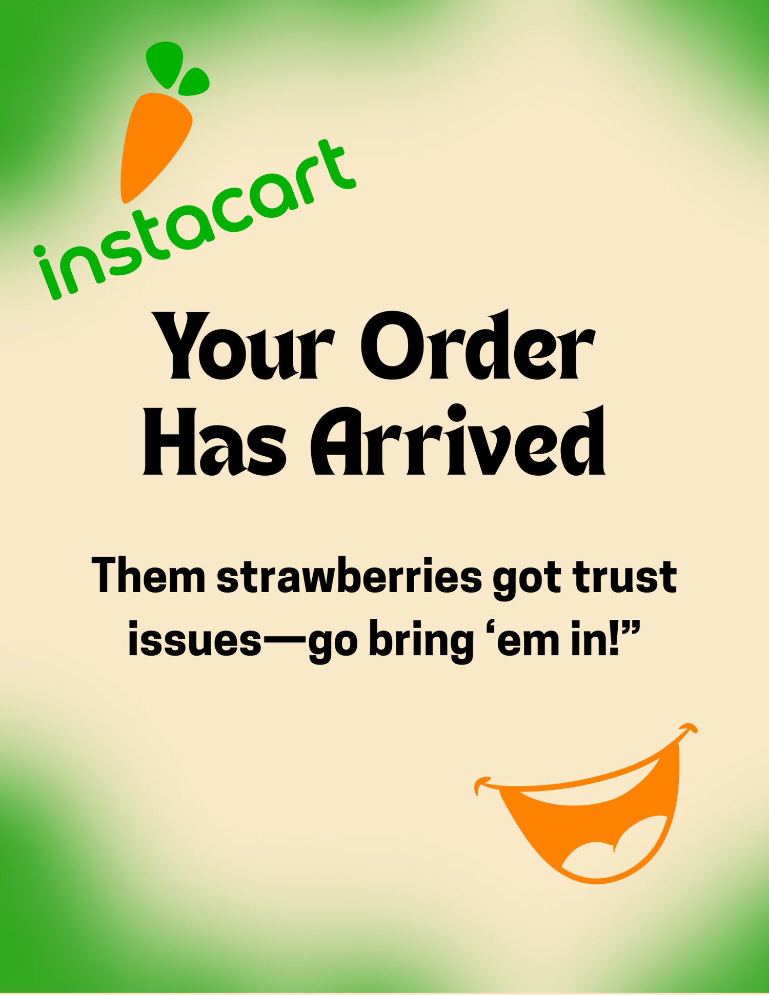 Cute funny Gig Worker Alert Card Don’t just deliver deliver with a smile leave your customers weak in the stomach from all the laughing they’ll be doing get Yours now (They all say Your foods hot you were on time and they love your digital alert