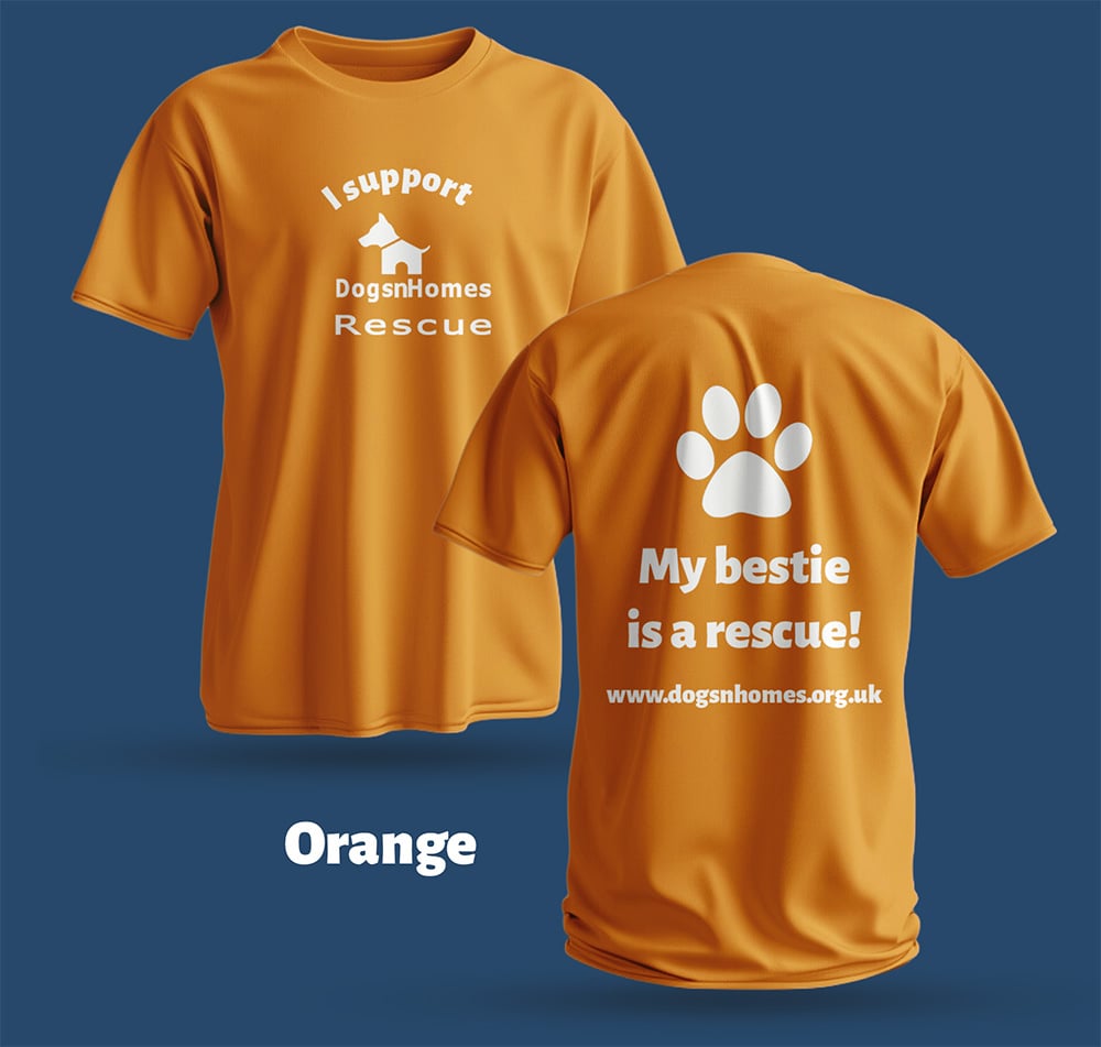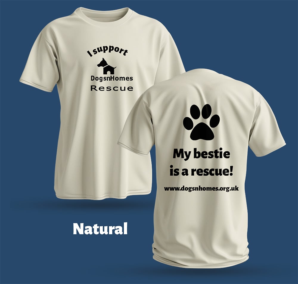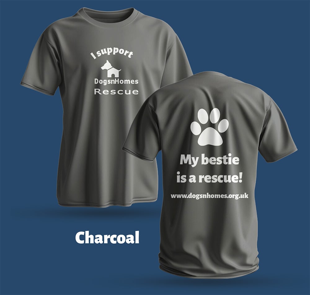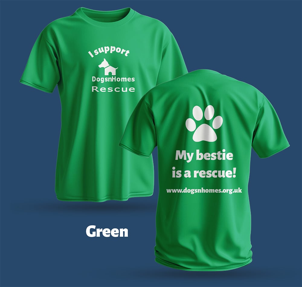 Tell the world your best friend is a rescue with our "My Bestie" t-shirt! The front features the DogsnHomes logo with the main design on the back of the t-shirt.