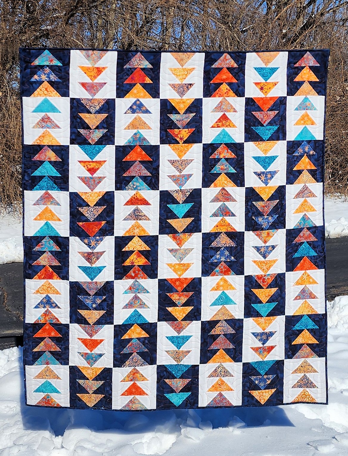 Fly Away makes it easy to feature the fat quarters from your favorite collection. Add a light or dark complimentary background and you’re off to the races! You can also make Fly Away to bust your scraps, instead of using coordinated fat quarters from a collection. Want to use less colors? Use half as many ½ yards as fat quarters listed on the pattern cover.