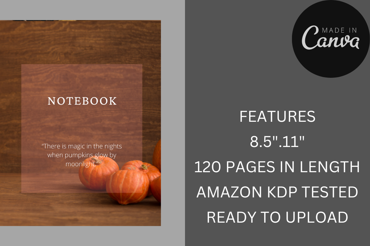 PUMPKIN THEMED KDP LINED PAPER COVER, LOW CONTENT BOOK COVER FOR KDP READY UPLOAD, PUMPKIN KDP JOURNAL PAPER COVER, JOURNAL NOTEBOOK MOCKUPS, KDP CANVA NOTE