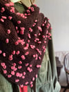 This cowl begins as a top-down triangle with increases at each end and down the center. When the desired neck circumference is achieved, the work is joined in the round and continued downward, maintaining the increases at the center front.