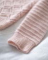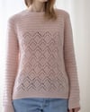 Cloudy Day Raglan is a beautiful textured sweater, combining lace and purl stripes. The sweater is worked seamlessly from top down and requires minimal finishing. The work begins with the neck ribbing. The neckline is then shaped with short rows. When the raglan increases are completed, sleeve stitches are placed on hold. The body is then worked in the round towards the hem and finished off with a ribbing. Sleeve stitches are then placed back on the needles and the sleeves are worked in the round towards the cuffs.