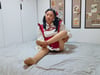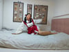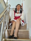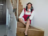 Liona showed off her look in a red maid outfit, appearing both innocent and sexy. The sight of her hobbling up the stairs with her cane and weak legs was simply irresistible.