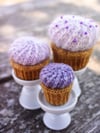 The only special equipment you’ll need is a little plastic condiment cup to go inside the cupcake. They're easy to find, and you can almost certainly get a few free with lunch or dozens of them for a few bucks. I've got a blog post over here with lots more info on where you can find them (and the pattern has lots of suggestions too). And if you want to stuff the frosting bit so it's firm, you'll need a little pinch of stuffing.