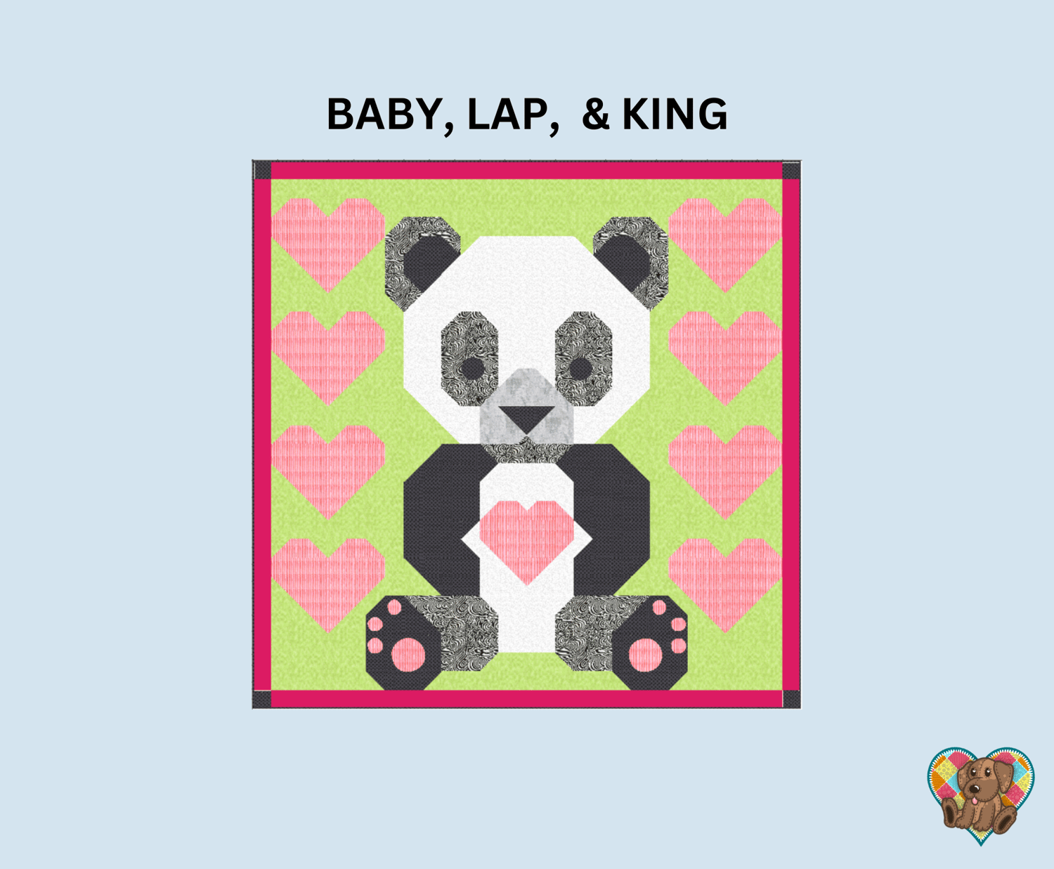 *Note: This pattern includes instructions for a baby (40.75" X 40.75"), lap (65.25" X 65.25"), twin (81" X 90"), queen (90.5" X 100"), and king (110" X 110") size quilt.* Blocks are traditional pieced blocks. Eyes and footpads are applique circles