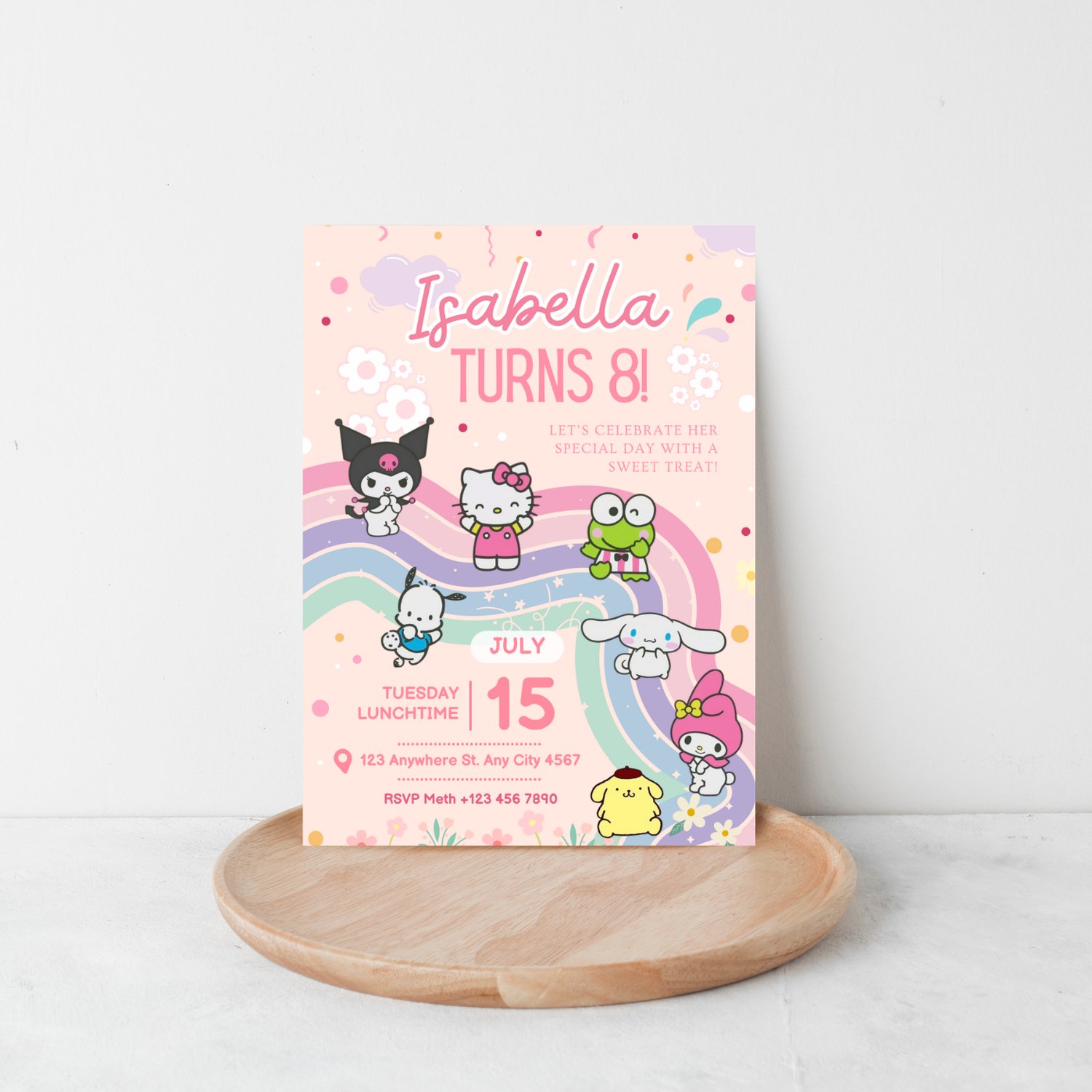 Sanrio Kawaii Hello Kitty Kuromi Kids Editable Cute Pink Kitten Party Invites Download Canva Template