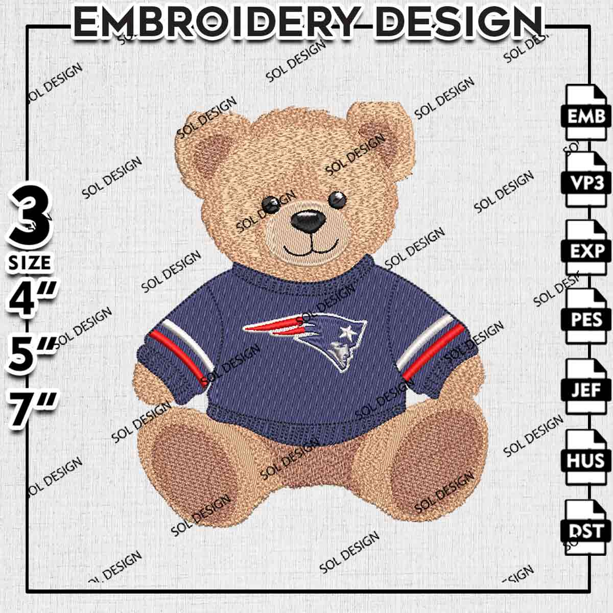 New England Patriots Team Teddy Bear Logo Embroidery Designs, NFL New England Patriots Embroidery Files, NFL Patriots Logo Embroidery, National Football League Machine Embroidery Design, Cute Teddy Bear Sport Designs, Digital Do