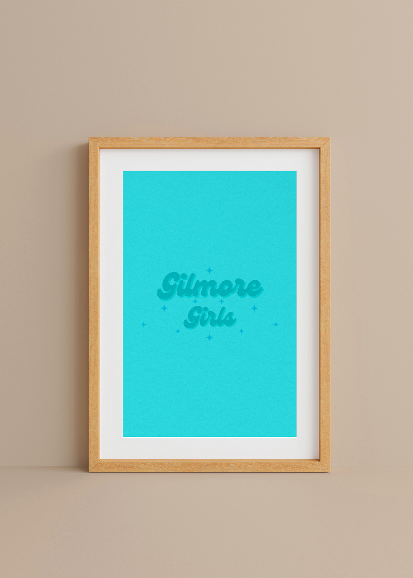 Gilmore Girls, Teal— A playful nod to a beloved world, this original piece brings the spirit of Gilmore Girls to life in a burst of color and charm. Set against a bright, cheerful backdrop, the iconic words shine in a fun, modern font—simple, bold, and full of heart. Whether it evokes cozy nights, fast-talking scenes, or small-town magic, this design offers a vibrant tribute to the stories we return to again and again. Available in a variety of joyful hues to suit every mood.