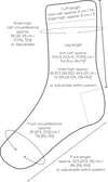 - Calf circumference in knee-high socks: approx. 28 [30, 31] cm / 11 [11¾, 12¼]" or adjustable