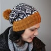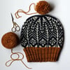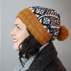 The finished hat is 17½ (19¾, 21¾, 24)”/ 44.5 (50, 55, 61)cm around and 9¾ (10, 10½, 10¾ )”/ 25 (25.5, 27, 27.5)cm deep. To fit with approximately 2”/5cm negative ease.