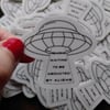UFO Reading, waiting to be Abducted by Aliens Cut Out Plastic Sticker.