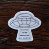 UFO Reading, waiting to be Abducted by Aliens Sticker - Lilith Leana