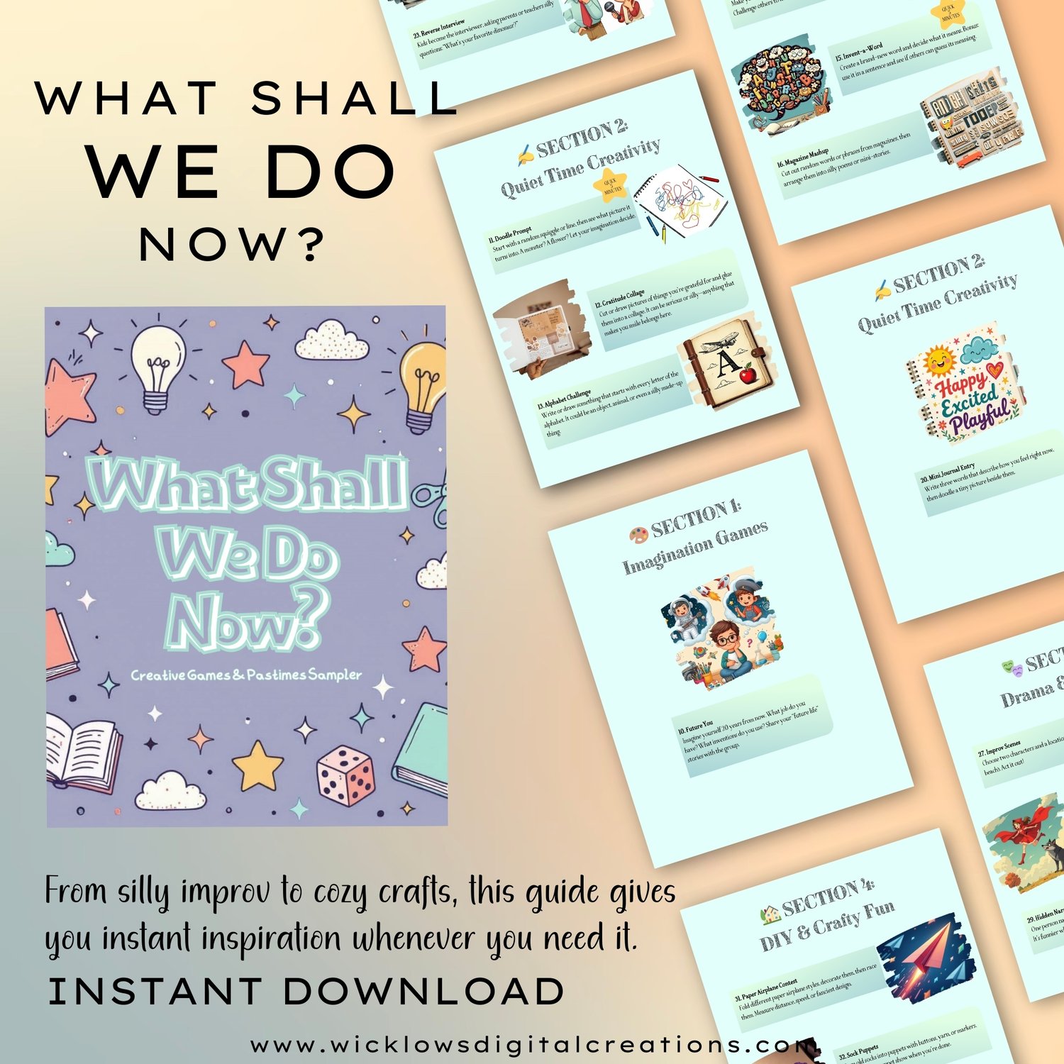 This Creative Games & Pastime Sampler offers a mix of engaging prompts, simple activities, and fun challenges that encourage both solo exploration and group play. From classic pen-and-paper diversions to whimsical brain teasers and artistic exercises, it’s your go-to guide for moments when you wonder, “What shall we do now?”